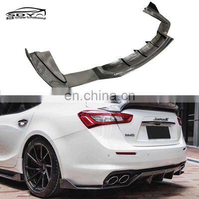 Products DescriptionKey attributesProduct IDA47-9Car MakeFor Maserati GhibliYear2018-2023PositionRear BumperMaterialCarbon FiberSize180*72*14CMProcessVaccum Bagging/Hand LayerQualityHigh-QualityPlace of OriginGuangzhou, GuangdongCustomized demandSupport customized requirementsODM/OEMAvailableProduct photos and installation effectsCompany Profile Guangzhou fast Daya auto supplies trading Co., LTD. Its factory was established in 2014, located in Guangzhou Guangyuan auto parts City Guangzhou Guangyuan East Road No. 1881. After years of development, the company has owned upstream and downstream channels including factories, warehousing, logistics, sales, and about 100 employees. Its products are exported to Southeast Asia, South Asia, the Middle East, South America, Europe and other countries, well received by customers. We not only provide finished product sales, but also provide custom production, design services, packaging customization. We hope to establish long-term and stable cooperative relations with our customers.Our AdvantagesProduct packagingFAQQ: What are your payment methods?A:All the accepted methods by , this includes T/T,D/P D/A,Credit Card,PayPal,Cash.Q: When will my order ship after purchase and how long does it take?A:Generally , shipping by express and by air will take about 6 -10 days ;shipping by sea need about 30days.Q: What is your sample policy?A: We can supply the sample if we have ready parts in stock, but pls show me your company's information.Q: What is your terms of packing?A: Usually we will package the goods by carton and wooden support.It will be allowed to sending oversea.We will also pack according to your requirements.Q: How can we guarantee quality?A: Shipment inspection quality, support video image verification.Q: How can I choose it correctly?A: Please provide your details, such as car model type/year,product names, colour, and so on,if you have any other problems,it doesn't matter,connect with us and we will do our best to help you to choose the best one which is the most appropriate for you.