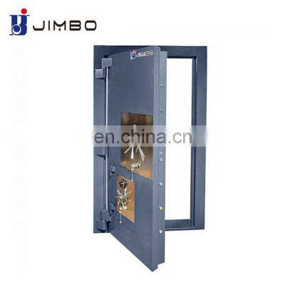 Vault Door*Brand NameJimbo*Product ModelVD Series*SizeH 2100*W 1100*D 240 mm*Weight650 kg or Customized*MateritalHigh quality cold rolled steel sheet Q235*Door Thickness50 mm*LockCombination Lock/Electronic digital lock/Key Lock*HandleBrushed solid steel handle*CertificateCE , RoHS, SGS , ISO 1182*Available colorWhite , Black , body and door can be in different colors*Packing5 layer standard export carton with thickened foam*SurfaceDurable electrostatic powder coatingAPPEARANCE:*.Durable electrostatic powder coating *.External ball-bearing hinges *.5-spoke polished handle *.Out-Swing *.Left-Hand DOOR FEATURES: *.23 Solid Bolts on 3 Sides *.1.25" dia. Locking Bolts *.1 5/16" Duo-Formed Steel Door made from a 10-gauge outer panel and 12-gauge inner plate *.3/16" Steel door frame with 12-gauge reinforced U-channel behind frame *.1 1/2" Fire Resistant Insulation in DoorCustomer CasesClick here to enquire and get more discountsProduct ShowcaseProduct DetailsClick here to enquire and get more discountsCompany AdvantagesRecommend ProductsCompany ProfileFoshan jimbosafe Co.,Ltd established in 2012, exporting our safe box to more than 118 Countries with over 10 years history . Located in Foshan,Guangdong, Jimbo owns 5,000m2 Modern Workshop, 50 Skilled workers,3 Reliable QC and 10 production machines andpassed 4 certification (CE, ROHS, SGS, ISO). Through our experienced sales team, we finish 50,000,000.00+RMB turnover per year andkeep growing.As Assessed Supplier by Alibaba, we hope can cooperate with you!Our TeamFAQProduction relatedIf you have any other questions, we would be more than happy to answer them for you. Please contact us below:Mrs. AnnEmail: annie@jimbosafe.com / Jessica@jimbosafe.com / sales01@jimbosafe.comMob & Wechat & WhatsAPP :+86 18666567569Q: Do you provide samples?A: We can provide a sample with freight and handling charges at your expense.Q: How do you send your samples?A: We usually send via international couriers such as DHL, FedEx or UPS. We can also work with you if you have other alternative arrangements.Q: What is your lead time?A: Our production lead time is typically between 25 to 45 days from receiving payment, depending on chosen items, quantities and specific requirements. We can have off the shelf goods ready to be shipped in 5 to 10 days if there are available stock and no change request.Q: Is there any warranty offered for the product?A: A two-year Limited free-warranty is offered.Q: What are your payment terms?A: We can work with L/C or 30% deposit upon ordering and remaining balance prior to shipping of products. We can provide photos of finished goods and also accept on site final inspection.Click here to enquire and get more discounts