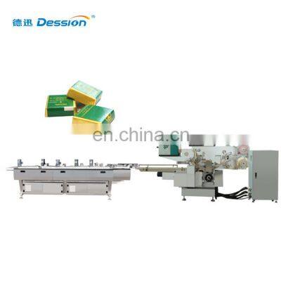 High Speed Chocolate Fold Wrapping Machine Candy Folding Packing MachineProducts DescriptionCompact fold wrapping machine for a performance range of up to 260 pcs/min. This folding packing machine is mainly packed with solid chocolate, candy, biscuits, Pu'er tea, chicken stock, soap and other hard products. Product packaging of different shapes and sizes can be realized after the mold is changed, such as aluminum wrapping packing.ModelDS-600Packing speed200-260 packs/minPacking SizeLength: 10-80 mm, Width: 4-45mm, Height: 4-35mmProduct shapeSquare, rectangular, circular, star-shaped, triangular, accept customizedPackaging materialWax composite film, polypropylene film, aluminum foil filmTotal power380V 50HZ 5KWAir Pressure0.6MPaOur CompanyDession a leading manufacturer of Vertical Powder/Granule/Liquid Packaging machine, pillow packing machine and supporting facilities, which has successfully developed more than 80 kinds of packaging machines. Dession Packaging Machine has widely applied for different fields throughout the world, such as food/industrial food, medicines, hotel supplies, disposable goods, rubber goods, daily appliances, hardware fittings, sporting goods, toys etc.Dession has more than 5,000 square meters of production plants, 3 production workshops and a parts processing workshop, including small vertical machine production workshops, large vertical machine production workshops and pillow machine production workshops.Why Choose UsDession is a modern packaging equipment solustion provider integrating R&D, production and sales.Since the establishment of the company, with the continuous exploration, research and application of advanced technology, the company's development has begunscale, with an innovative team of professional and technical personnel, engineers, sales and after-sales service personnel.Dession has a professional team to provide customers with various packaging solutions. Fully understanding the needs of customers,engineers design the most suitable solution. We have our own processing and assembly workshop and quality inspection and debugging process to ensure the quality of the machine. After acceptance by the customer, they are packed in international standard wooden cases and shipped. Recommend ProductsCertificationsPacking & DeliveryPayment1.T/T and Western Union are accepted2.30% deposit before production and 70% balance before shipment3.All banking charges outside China are on buyersShipping1.Upon receipt of payment , delivery date will be in 15-30 working days,2.By Air, by Sea or by Express (DHL etc)3.Shipment cost will depend on the destination, shipment way and the weight of the goodsFAQQ1:Do you have manual or operation video for us to know more about the machine? Yes, not only manual or operation video, 3D drawing also available to make as per your design,also the video we can make of testing the material from our packaging machine if your packing goods easier for us to find from our local market. Q2:How can I trust you for the first time business ?Please note our above business license and certificate. And if you don't trust us, then we can use Alibaba trade assurance service, guarantee your money, and guarantee your machine's on-time delivery and machine quality.Q3:Is engineer available to serve oversea?Yes, but the travel fee is paid by you. So actually to save your cost, we will send you a video of full details machine installation and assist you till the end.Q4:How can we make sure about the machine quality after we put the order?Before delivery, we will send you the pictures and videos for you to check the quality, and also you can arrange for quality checking by yourself or by your contacts in China.Q5:Will you provides the door to door service?Yes. Please offer us your final destination, we will check with our agent to see if it available, and most of the area is ok for us to clearing and sending in your countries.