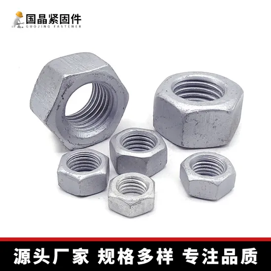 Advantages: Superior Durability: The zinc coating formed during the hot-dip process makes the nuts highly resistant to wear, moisture, and harsh weather conditions. Low Maintenance: Once installed, the galvanized coating reduces the need for maintenance or replacement due to rust or corrosion. Cost-Effective: Provides long-lasting performance at a competitive price, reducing long-term replacement costs. Certifications: ISO 9001 certified manufacturing process for quality assurance. Complies with DIN, ANSI, and BS standards. Available Sizes: Available in a wide range of metric and imperial sizes, including common sizes such as M6, M8, M10, M12, and M16. Custom sizes available upon request. Packaging: Packaged in bulk or individual boxes depending on your order requirements. Available in standard or custom packaging for easy handling and storage. Detailed Photos