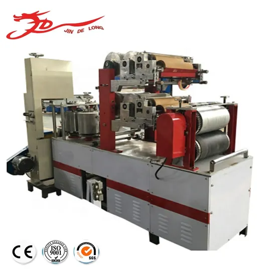 The high-speed napkin machine is used for embossing, folding, electronic counting, cutting and processing into a square napkin. The production process is automatically embossed and folded without manual folding. The pattern of the napkin can be made according to the needs of users. Different clear and beautiful patterns. Main features1. The machine can work continuously. 2. The sealing can be finished one time. It improves the working efficiency and lower the cost. 3. The machine operation is very easy, has low requirement to the workers. 4. The whole machine use PLC computer control, accurate control on the position; easy to change the operation parameter and settings. 5. The main control part adopt imported good quality materials. Other part is in accordance with the national good quality standard part. The machine is stable and of good performance.