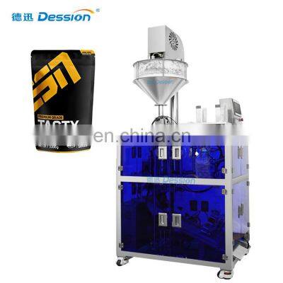 Hot sell chilli powder packing machine stand pouch packaging machine standup pouch packing machineProduct DescriptionOne machine for your current and future needs! The versatility of DESSION pouch packing machines for the filling and sealing of stand up bags allows you to customize your machine to meet the current needs of the market and your individual technical requirements!Using DESSION Stand-up Pouch packing machines for packaging premium pieced products and powdered products into doy pack bags and zipper doy pack bags, such as coffee, tea, biscuits, nuts, cereals, chips and many others.Packing speed15-25bags/minuteAvailable bag length150-200mmAvailable bag width100-200mmVoltage220V 50HzAir pressure0.6MpaPower1.5KWMachine size1020*980*1740mmMachine weight230KGFully automated packaging machine with automatic weighing, filling, date printing and sealing. To change bags of different sizes,just adjust the bag holder and modify the parameters on the screen. Simple operation.Auger measuring partThe product accurately weighs the required weight through an augerBag Given DeviceDepending on the size of the bag, the size of the bag holder can be customized or adjusted so that the machine can grab the bag.Date printerSet the corresponding date on the screen as required, and the machine will automatically print on the bag.Bag Opening DeviceThrough the suction ports on both sides of the devi.ce, the bag can be opened quickly and efficiently.Sealing DeviceThe sealing device is sealed by a high-temperature mold.If you want to get best price,please contact me!!SALES MANAGER: KENNY LEEMobile/Whatsapp/Wechat: +86 13380522184Related ProductsIf you need to pack a larger weight, we can also provide you with more machine options.Our CompanyCertificationsPacking & DeliveryPayment1.T/T and Western Union are accepted2.30% deposit before production and 70% balance before shipment3.All banking charges outside China are on buyersShipping1.Upon receipt of payment , delivery date will be in 15-30 working days,2.By Air, by Sea or by Express (DHL etc)3.Shipment cost will depend on the destination, shipment way and the weight of the goodsFAQQ1:Do you have manual or operation video for us to know more about the machine? Yes, not only manual or operation video, 3D drawing also available to make as per your design,also the video we can make of testing the material from our packaging machine if your packing goods easier for us to find from our local market. Q2:How can I trust you for the first time business ?Please note our above business license and certificate. And if you don't trust us, then we can use Alibaba trade assurance service, guarantee your money, and guarantee your machine's on-time delivery and machine quality.Q3:Is engineer available to serve oversea?Yes, but the travel fee is paid by you. So actually to save your cost, we will send you a video of full details machine installation and assist you till the end.Q4:How can we make sure about the machine quality after we put the order?Before delivery, we will send you the pictures and videos for you to check the quality, and also you can arrange for quality checking by yourself or by your contacts in China.Q5:Will you provides the door to door service?Yes. Please offer us your final destination, we will check with our agent to see if it available, and most of the area is ok for us to clearing and sending in your countries.Our Service