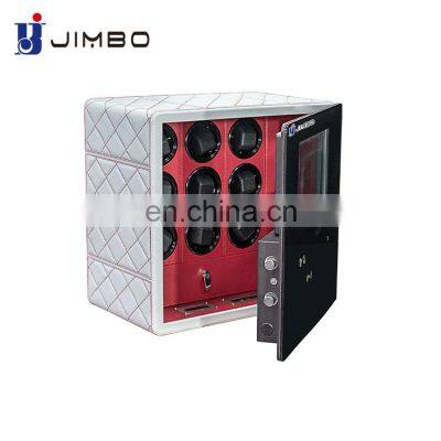 Products DescriptionWatch winder safe*Brand NameJimbo*Product ModelWT Series*SizeH414*W433*D234mmWeight42 kg*MateritalPu Leather & cold rolled steel sheet Q235*ColorOrange (Accept custom colors)*CertificateCE , RoHS, SGS , ISO 1182*Motor Quality Japanese Mabuchi Motor*Capacity 6 rotors and 5 storage gridsProduct DetailsInquire now and we offer free design and discountsProduct packagingRecommend ProductsCompany ProfileFoshan jimbosafe Co.,Ltd established in 2012, exporting our safe box to more than 118 Countries with over 10 years history . Located in Foshan,Guangdong, Jimbo owns 5,000m2 Modern Workshop, 50 Skilled workers,3 Reliable QC and 10 production machines and passed 4 certification (CE, ROHS, SGS, ISO). Through our experienced sales team, we finish 50,000,000.00+RMB turnover per year and keep growing.As Assessed Supplier by Alibaba, we hope can cooperate with you!Inquire now and we offer free design and discountsOur TeamFAQProduction relatedIf you have any other questions, we would be more than happy to answer them for you. Please contact us below:Mrs. AnnEmail: annie@jimbosafe.com / Jessica@jimbosafe.com / sales01@jimbosafe.comMob & Wechat & WhatsAPP :+8618666567569Q: Do you provide samples?A: We can provide a sample with freight and handling charges at your expense.Q: How do you send your samples?A: We usually send via international couriers such as DHL, FedEx or UPS. We can also work with you if you have other alternative arrangements.Q: What is your lead time?A: Our production lead time is typically between 25 to 45 days from receiving payment, depending on chosen items, quantities and specific requirements. We can have off the shelf goods ready to be shipped in 5 to 10 days if there are available stock and no change request.Q: Is there any warranty offered for the product?A: A two-year Limited free-warranty is offered.Q: What are your payment terms?A: We can work with L/C or 30% deposit upon ordering and remaining balance prior to shipping of products. We can provide photos of finished goods and also accept on site final inspection.Inquire now and we offer free design and discounts
