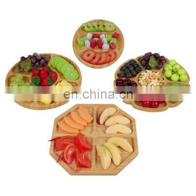 Bamboo Wood Plates Round Wooden Trays Dinnerware Set For Serving Fruits Set Of 4