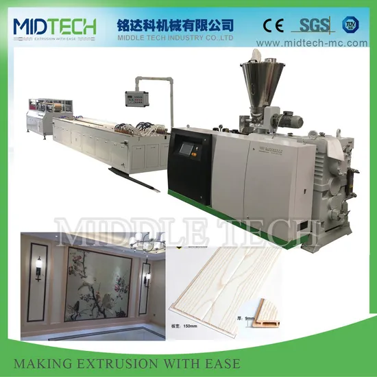 PVC WPC decoration wall panel extrusion production line is used to produce PVC/WPC wall panel with different size, such as 300mm, 400mm, 500mm, 600mm wide, etc.