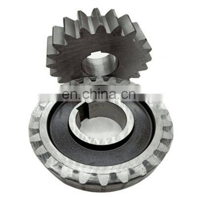Products DescriptionCustom high quality transmission axle spiral bevel gearDetails ImagesProduct featuresHelical bevel gear has high transmission efficiency, stable transmission ratio, large arc overlap coefficient, high bearing capacity, smooth transmission, reliable operation, compact structure, energy saving, space saving, abrasion resistance, long life, low noise.SPECIFICATIONSThere are 10mm-1600mm diameter, modulus 1-36 modulus, precision grade of spiral bevel gear gb5-GB8.ApplicationSpiral bevel gears are widely used in domestic oilfield petrochemical machinery, various types of machine tools, all kinds of mechanical processing equipment, engineering machinery, metallurgical equipment, steel rolling machinery, mining machinery, coal machinery, textile machinery, ship machinery, shipbuilding, aerospace, forklifts, elevators, deceleration machine, the aircraft manufacturing and many other industries.Material:Steel 4140Number of Teeth:17Presure Angle:20°Surface Treatment:BlackeningProcess:Hobbing,WeldingApplication:GearboxWorkshopRelated ProductsCertificationsPacking & Deliverly