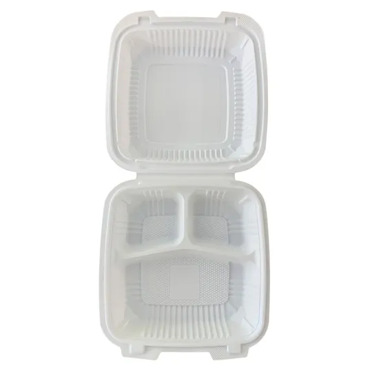 Product Description Imadel provides corn starch and sugarcane products for your choice. Corn starch clamshell and plates are made of corn starch+plastic, it can be called biobased but not compostable. Size and color can be customized. Sugarcane containers and plates are made of sugarcane pulp, it's 100% compostable. Bleached and unbleached color are available. They are both oil and water-resistant, making them perfect for packing hot and cold food. And the good part is that they can be microwaved or frozen without any worries.