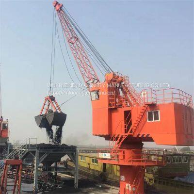 This HGQ crane mounted on wharf embedded foundation, is a fixed crane with fixed full rotation, single-arm rack, rack luffing, leverage live balance, cylinder support, and it carries out the loading and unloading operation of bulk cargo or packed cargo by using grab or hook. This machine uses AC frequency control, PLC control, and installed intelligent "state monitoring and control system." It has the characteristics of beautiful appearance, safe and reliable work, advanced performance, convenient maintenance, high durability and so on. It can be widely used in loading and unloading operation of port wharf and freight yards.