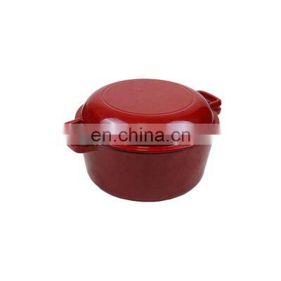 Product Description5-QT 2 in 1 Cast Iron Cookware, Double Dutch Oven Casserole PotMaterialCast iron Size26*26*10.7cm35*30*5cmVolume5QT3.5LColorcustom colorLogocustomizedPackageColor box packing + outer boxDetails ImagesPerfect for oven-to-table presentations of soups, stews, beans, or any family favoritecast .iron skillet is Perfect on most of the heat sources e.g. gas, induction or oven (except Microwave)The lid of the pot is heavy and steady, and the nutrients are locked in the pot, allowing the ingredients to release theiroriginal flavor.Sealing inner circulation, lock water vapor.Pre-seasoned heavy duty cast iron dutch oven and casserole with a lid that doubles down as a skillet Sturdy, Multi-fonction cast iron skillet can be used as either a stock pan or a frying pan.Important Explanation 1. First time use this cookware, choose warm water add some Neutral detergent to clean. 2. In daily life use Neutral detergent or Dedicated detergent to clean, can keep cast iron cookware life long time. 3. Avoid sudden temperature changes, when the cookware high temperature, pls don’t putthe cold water, prevent enamel coating falloff. 4. Avoid overheating, this cookware have thermal conductivity, high temperature heatingwill be make cookware body overheat,It is recommended to use low heat heat.Packing & DeliverlyRelated ProductsCertificationsFactory IntroductionShowroomStorage CapacityProduction Process