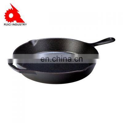 26cm vegetable oil surface cast iron deep non stick frying pan with lidProduct DescriptionMaterialcast ironSurfacevegetable oil+enamelWeightbased on actual gross weightLogoaccording to customer's requirementApplicationBusiness gifts, trade fairs, festivals, employee benefitsPackage size331*40*339mmCast iron pots and pans have been used for hundreds of years; many have been passed down through generations. Cast iron cookware is versatile and durable. It can go from stovetop to oven and back again, if necessary. It heats evenly and holds the heat well, making it excellent for browning meat or simmering stews and soups. How To Maintain Cast Iron Pans?Let the cast iron frying pan cool.Wash it with dishwashing soap and water. Never soak or let soapy water sit in the pan for any length of time - just briefly wash it out. Rinse thoroughly, then dry with paper towels. NEVER put cast iron cookware in the dishwasher. A lot of people disagree with using dishwashing soap and water to wash cast iron pans. A chef told me that if a health inspector ever found a pan that had not been washed with soap and water in his kitchen, he would be in trouble. Plus the grease that is left behind will eventually become rancid. You do not want rancid oil in your foods and body.Place the cleaned cast iron frying pan on the heated burner of your stove for a minute or two to make sure that it is bone dry. While the pan is still hot and on the stove burner, lightly oil inside of pan (I mean a light coat) with a neutral cooking oil. I use a paper towel to spread the oil lightly over the pan.Neutral Food-Grade Oils - Use vegetable oils (canola, sunflower, etc.), shortening (like Crisco shortening) or lard for seasoning your cast iron pans. I recently experimented and found out that food-grade coconut oil/butter also works great.Leave frying pan on the hot burner of stove for a few minutes. Remove from hot burner and wipe excess oil off the pan with a paper towel.Store your cast iron cookware with the lids off (especially in humid weather, because if covered, moisture can build up and cause rust). Be sure that you place a couple paper towels inside your cast iron pan when storing to make sure that any moisture that forms will be absorbed by the paper towel. Never put the utensil in the dishwasher or store it away without drying it thoroughly.How to Clean Cast Iron?1. When you’re finished cooking in cast iron, scrape out the pan, while still warm, with a wooden spoon. Wipe it down with a bit of oil on a paper towel. I usually use the canola oil I have on hand.2. If scraping the pan with a spoon doesn’t get off all the grime, melt a tablespoon of vegetable shortening in the pan, turn off the flame and add a tablespoon of salt. Use a paper towel in tongs to scrub the pan. Wipe salt out with clean paper towel. Run under hot water, dry it well, and follow the re-seasoning directions above.3. If the wooden spoon and the salt technique weren’t to your liking you can use a mild, diluted soap and a soft sponge to clean the pan. You just want to avoid strong soaps and super scrub pads. Dry the pan with a clean dry dish towel and set in a warm oven to dry completely. Follow the seasoning directions above to re-season cast iron.Note: Never put your screamin’ hot cast iron skillet into water. It could crack.Certification FAQQ1. What is your payment term? A: T/T 30% down payment, balance to be paid before shipment. or L/C. Q2: What is your main market?A: Western Europe, North America, Janpan,, Q3: Can I get samples from your factory?A: Yes, sample is free, but the express charge is yours. Q4: If products have some quality problem, how would you deal with?A: We will responsible for all the quality problems.Q5.Are you manufacturer or trading company?A.We are manufacture(cast iron) and trade company. Q6. what’s the payment term? A. We accept T/T, L/C,WESTERN UNION Q7. What’s the delivery time ? Pattern needs 30-60 days, sample need 30-50 days. The first order need 60 daysQ8. What is the standard of package? A. Export standard package or special package according to customer requirement. Q9. Do you accept OEM business?A. Yes, we are OEM supplier. Q10. what kind of certificate you have ? A .We have ISO9001, ISO14001,PED