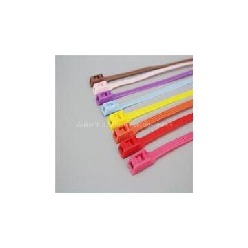 Features:Fixed and flexible two-wedge locking design provides a low threading force, Teeth on both sides of cable tie body provide additional locking strength and improved flexibility to conform to irregular bundle shapes such as securing cables to cable tray systems, Releasable head position for temporary bundling of cables prior to final locking; no need to replace ties when adding cables/wires to the bundle