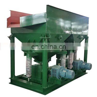 Products DescriptionFactory customization Mineral Processing Plant Gold Jigging Concentrator In Mining Separator Jig MachineJig machine operating recovery rate is higher than the sine wave by the sn: 3.01%, w: 5.5%, pb: 1.63%, zn: 2.04%; water consumption reduced by 30% -40%, covers reduction by 1/3, and the stroke is adjustable. The performance of Saw-tooth Wave Jig hasreached the domestic advanced level, and is one of the ideal devices in energy-saving gravity separation.Iron Ore Jig Mining Separating Washing MachineCapacity: 1-20 TPH as per requested.Suitable for Material: gold ore/coltan ore/ tin ore/ tungstenore/ diamond ore/Barite ore/ iron ore/ manganese ore, ect.Jig Separator ApplicationMainly applied for placer gold , alluvia gold , tantalumniobium , titanium , coltan ore , tungsten , iron , tinhematite , cope , manganese , barite , zirconium and chromeetc concentration.When processing the open-pit mines , the saw-tooth wavejigger is a key machine with the principle of gravityseparation . Its pulse curve is like saw-tooth waveform tomake rising water faster than the dropping water ;enhanced the loose of bed . Eased the inhaled rolethat heavy particles in the mineral can fully settlementgreatly improving the sorting capacity and recovery rateof equipment.Jig machine/gold jig outlookThe top of jig machine/gold jigging/mineral jigsThere is a screen on the top. It will be covered by the steel shots and ragging. (checking the following pictures)Backside of jig machine/mineral jigThere 2 inputs for water input.Steel shots for jig machineJig bedding balls in various size.Screen for jig machineThe jig screen/sieve is the final point of separation between light and heavy particles smaller than screen aperture size.Jig's BedThe components of the jig’s bed start with a bottom bed of ragging AKA steel shots, that is normally introduced artificially, or in some cases is built up naturally by heavy mineral that were present in the ore feed to the jig.Jig machine Some Details Many competitors often the thickness of the steel plate thinner, use cheaper motor, use renewable rubber, etc, to reduce the price.Area Jig different from each model Heavy mineral deposit Famous brand high quality motorBack wash water hole Natural rubber tympanum Durable wave boxJig machine Features 1. High capacity, large range of separation size 2.High concentration ratio & high recovery 3.Fabricated with highquality material 4.Easy to install, operate & maintain 5.The pulsation curve is saw-tooth wave shape facilitate heavy mineral to settling 6.Saving water 30-40% than ordinary jig 7.The pulsation speed is easy to adjust by regulator 8.Suitable for roughing & de-sliming 9.Simple for operation and maintenanceJig machine Working PrincipleJigger machine beneficiation is one way of gravity beneficiation. It belongs to deep trough separation operations, use water as processing media, it depends on the difference of specific gravity between the mine to be select and gangue to separate mine, Theyare mostly in septum type, the stroke and time of stroke is adjustable depend on different specific gravity of mine, it’s widely used to select Tungsten, tin, gold, red iron, brown iron, manganese, titanium, antimony, lead, tantalum, niobium and other metal.ModelJig area M2Feeding size mmCapacity T/HStroke R/MinHutch water T/HPressurekg/cm2Power KWWeight TJT0.57-10.57<61-2.560-1601-2>0.31.50.612JT1-11.04<104-1060-1602-30.3mpa2.20.9JT2-22.28<108-1560-1602-40.331.63JT4-24<108-1650-1253-60.17.54.6JT4-2A4<108-1650-1254-80.15.5*24.6JT5-24.86<1010-2080-1204-100.17.54.8Company Information:About HENGCHANGHengchang headquarters is located in the industrial park in Gongyi City. It covers a total area of 150,000 square meters, including 100,000 square meters of standarized workshop. There are more than 200 sets of various large and medium-sized metal processing lathe, riveting machine, welding equipment and assembly equipment. We have more than 300 workers, including more than 20 middle and senior technicians. Hengchang is mainly focus on 4 series products: stone crusher machines, sand making equipment,powder grinding mills, mineral processing equipment and their spare parts. Every year, Hengchang can turn out 1,000 sets of crushers and 10,000 tons of crusher parts.Customer SiteOur machine has been sold to Germany, Australia, Japan, Mexico, Philippines, Russia, Uganda, Uzbekistan, Zimbabwe, etc. and our products are well received by customers. All machine has a 1-year quality assurance. As long as the machine has any problem (non-human factors) within one year, we will repair or change with new one for free. Exhibition & customer visitHengchang - Our ServiceBefore-sale services:We guide customers to choose the best and applicable device; provide the advanced, energy-saving and practical technological processes, as well as we are responsible for the planning and design of the site.Sale services: Products must be inspected strictly before being sold; customers are invited to simulate and test machine on-the-spot and raise objections; in accordance with the agreements stipulated in the contract, we will arrange delivery.After-sale services: Our Company will send professional engineers to guide device installation, debug and train operators until customers are fully satisfied. Moreover, we will design and produce machines according to the special requirements of customers. Solemn Promise: The quality guarantee period of machines is one year except the wearing partsTips:The prices in the web only to be reference,according to raw material's price fluctuations; Specific price is subject to the negotiation.Packing and deliveryPackaging Details:Normally the machines are taken apart before delivery and are packed by suitable packing ways, the packing ways are as below: Nude packing. Bundle packing. Grass rope packing. Water proof packing. Wooden pallets packing. Wooden box or carton box packing.Delivery Time:We will customize according to the actual 