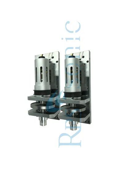 A rotary ultrasonic assembly mounted in a bearing housing that can be mounted in any orientation. It is available in 20, 35 kHz with bond widths of up to15MM. The bonder is intended for machinery manufacturers and experienced end users who desire to develop their own actuation and tooling solutions. Ultrasonic Sewing Machines operate like a traditional rotary sewing machine but produce soft, smooth seams that are impervious to moisture or fluids.