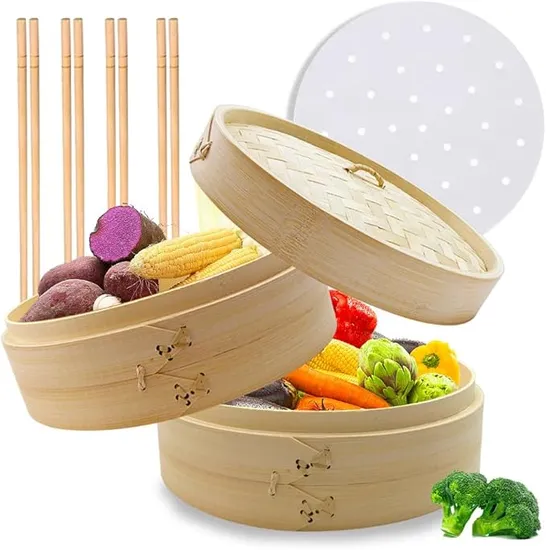 Product Description    Steamer Combo: You will receive a 10-inch steamer basket (2 layers + lid), 4 sets of chopsticks, and 50 paper pads. Food lovers who want to make healthier and tastier meals in no time!
