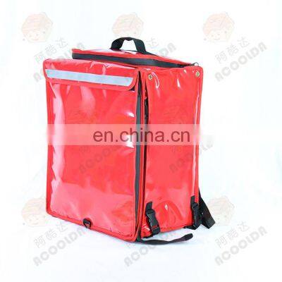 Product DescriptionProduct Model:ACD-B-025Size&Capacity:Outer size:44*44(24)*50cm Inner size:42*42(22)*48cm 96LMaterial:Outside 840D PVC+9mm insualtion foam+PVC zipper +Food grade hollow plateColor: Black ,red ,orange,blue,yellow, green or custom colorMOQ:300PCSCarton package size:41*49*66cm 5pcs/ctn  1.82kgDelivery date:30 days for mass productionLOGO:could be customerized if meet our MOQOEM/ODM:WelcomeOEM sample time:around 7-10 daysPayment:Trade Assurance/ 30% for order deposit, 70% blance before deliveryFeature:1.Backpack design.2.Large capacity.3. The thick 840D PVC +9mm insulation foam4.aluminum interior providing an extra layer of heat reflection, will not retain moisture or odors.5.This delivery bag is collapsible and easy to disassemble.6. Custom logo and colors.use way:On bicyle,on car,hand,liftCan be use as cooler bag or keep hot bag for pizza,cake,fast food delivery or keep fruit fresh and cans drinking cool.1. Shoulder Strap: With padding and is comfortable.2. Waist belt: Can carry better.3. Foam padding:  feel more comfortable when carry.1. Plastic foot feet: To anti dirty & stand stable.2. D ring : Can use the elestic to help fixed on the bike/motorcycle.3. Belt and buckle system: Design for fixed on the bike/motorcycle.Related ProductsCompany IntroductionFAQ