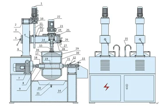19. Clamp shaft                    20. Tray                              21. Liquid return pipe              22. Grinding head reduction unit