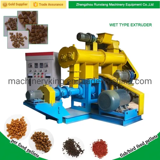 2. Main Features      Screw Quantity: Single   Screw Material: 38CrMoAl   Rotating Speed: Adjustable   Temperature: Adjustable   Self-cleaning Function   Forced Lubrication Function   Flexible Collocations   Pasteurization Function   Flexible Collocation of Equipment   3. Dry / Wet Way Fish Feeds Extruder Floating Pellet Making Machine