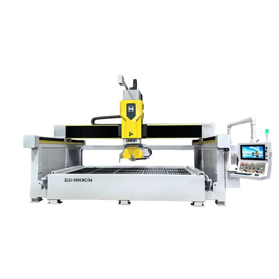 5 Axis CNC SawJet can not only perform efficient Line cutting by Blade Saw, but also can process various curves and small angles by Water jet. It can process stones with high hardness , such as sintered stone, porcelain, ceramic, etc. Making it easy for stone chamfering, basin hole and internal angles processing. The processing method of this machine is flexible and convenient, with a high degree of automation and simple operation. It is currently the most advanced stone processing machine in the stone industry.