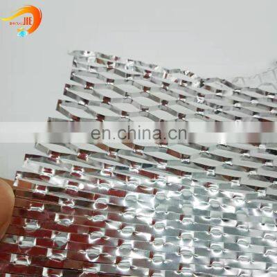 Aluminum Foil Expanded Metal Mesh Product Description Aluminium foil mesh is also called aluminium foil filter nets, and expanded metal foil filter mesh. Aluminium foil is punched and stretched by machine, which shape is diamond and hecagonal. The outside width of aluminium foil meshes is 500mm-800mm, the thickness is 0.02mm-0.7mm, the mesh opening can be 1x2mm, 3x6mm, 4x8mm, 5x10mm, 3x8mm, 4x10mm, 4x12mm, 6x12mm, etc. It is mainly used on air filtration and liquid filtration, such as air-conditioner filtration and rang hood filtration. Aluminum Foil Expanded Metal Mesh SpecificationMaterial:Aluminum sheet, aluminum Alloy SheetThickness:0.02-0.7mmMesh Opening:1x2mm, 3x6mm, 4x8mm, 5x10mm, 3x8mm, 4x10mm, 4x12mm, 6x12mm, etc.Size:0.6*100m Product Details Applications LIQUID FILTRATIONAluminum Foil Expanded Mesh stretch metal mesh may be used for liquid filtration and/or separation in the following industries: Chemical processingGas turbinesFood processingWater and waste treatmentPharmaceuticalsPlasticsBrewing and wine makingGasoline, diesel or alternate fuel engines AIR FILTRATIONAluminum Foil Expanded Mesh stretch metal mesh are used in the following applications: Engine crankcase—breather elementsAir conditioning systems—to filter compressor oil from air and to remove pollen from intake airRestaurant range hoods—as grease trapsHeating and ventilating systems—to filter dustIntake filters—for air compressorsClean air rooms—as dust trapsEngine air intake filtersIndustrial vacuum cleaner filtersAir cleaning and smog suppressant equipmentWashing machines—as lint traps Our Service 1. Small sample is free.2. According to the different customer need to customize logo.3. According to the color of the customers like to customize.4. We have full stock, and can deliver within short time.5. Good Quality + Factory Price + Quick Response + Reliable Service, is what we are trying best to offer you.We have rich experience of design, manufacture and sell wire mesh products, we cherish every order from our honor. Why Choose Us 1. Professional Over 20 years' experience in wire mesh industry and export more than 70 counries. Dongjie Wire Mesh is the real professional manufacturer.2. Product Quality The quality of product is the key of the survival of enterprise . Dongjie Wire Mesh is a ISO9001:2008 certificated manufacturer.3. Reasonable Price We'll exactly control each producing process to reduce cost for our customers. After clients receiving the quotation, we 'll show you the rational priceand the difference between our products and other suppliers' products.4. Delivery Time We'll make a produciton plan before producinig, and the sales will regularly inform the production schedule and process to the customer.5. Communication English is the basic language and other language also can be understood. All customer's e-mail will replied within 2 hours at working hours and must be replied within 12 hours at non-working hours.6. Customized Personalized, professional service: We can provide different programs according to customer's requirement, thus make customers choose the best and appropriate one. FAQ 1. How to make an inquiry of Wire Mesh?You need to provide material, wire diameter, size and the quantity to ask an offer. You can also indicate if you have any special requirement .2. Could you provide free sample?Yes, we can provide free sample in half A4 size together with our catalogue. But the courier charge will on your side. We'll send back the courier charge if you make an order.3. How is your Payment Term?Generally, our payment term is T/T 30% in advance and the balance 70% against the copy of B/L. Other payment term we can also discuss.4. How is your delivery time?We always prepare enough stock material for your urgent requirement, the delivery time is 7 days for all the stock material.We'll check with our production department for the non-stock items to offer you the exact delivery time and producing schedule. If you need to consult the price, please feel free contact us. Contact Us