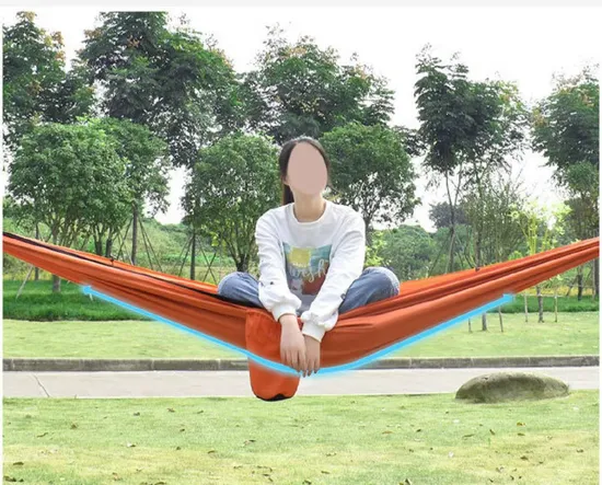 Product Description The camping swing hammock is convenient to fold and store, won't take much space You can easily mount the hammock on a tree or pole This outdoor hanging hammock adopts 210T nylon, is wear-resistant and not easy to be torn out This hanging swing bed is wide, can fit for one or two people to use Fit for many places to use, such as wild, patio, backyard, woods, and so on Enjoy the Swing: Lie down and rest with your friends, kids or lovers, relax in complete comfort under the sway. There are multiple colors available in the hammock. Super Lightweight: Can be folded into the small attached sack, portable to carry and fits into backpack. It is a great replacement for tent, sleeping pad, ground mat, swing, cradle, etc. Super Length Rope: Each rope 157 inch lengths (others is 78.5 inch), you can wrap it around big trees or other objects, can be hung or surrounded, best hammock straps kit ensures your perfect outdoor and indoor hammock experience. Durable & Comfortable: Made of 210T parachute fabric material, has excellent antifraying, anti-tearing, dirty resistance. Easy to be cleaned and dry quickly after being wet. Great Gift: Ideal gift for friends, kids, lovers, father, mother, traveler, beach visitors, tent campers who loves traveling camping, backpacking hiking for a relax. Or hanging the hammock and relaxing on it in the patio. Model No: WBB16932 Detailed Photos