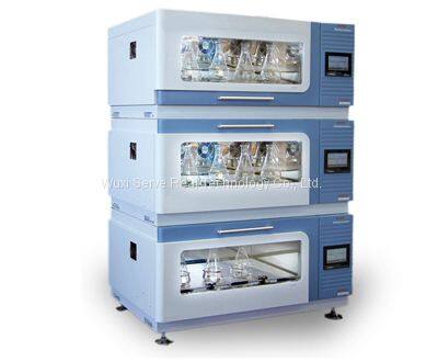 The maximum three-layer stacking combination method takes up less space and can effectively use the laboratory space; each layer is independently controlled, and different temperatures and rotation speeds can be set.