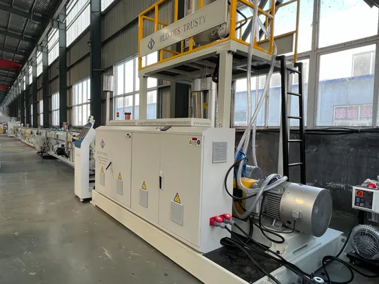 Single screw extruder →Co-extruder for color string & Multi Layers → Mould → Vacuum Calibration Tank → Spray Cooling Water Tank → Haul-off → No Dust Cutter → Stacker → Final Product Inspecting &Packing