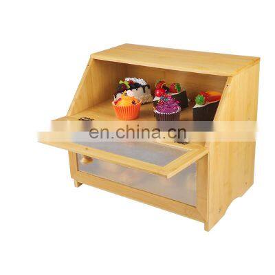 Double Layer Large Bamboo Bread Box Kitchen Counter Wooden Large Capacity Bread Storage Bin