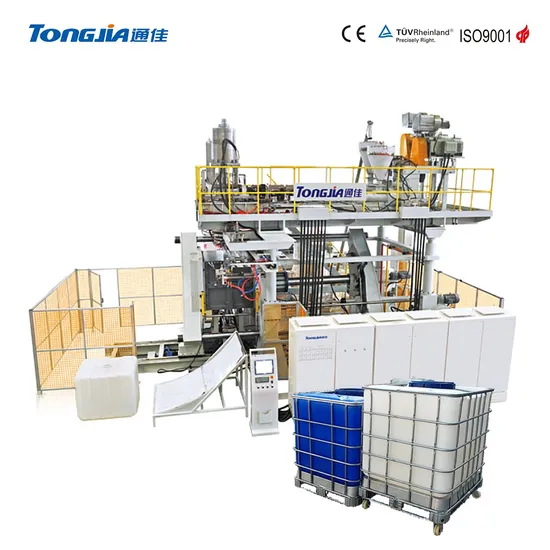 Tongjia TJ-KB2000L/IBC -3000L blow molding machine is mainly used to produce industrial IBC packaging barrels, blow molding trays, civil water storage tanks, amusement facilities, etc. The original imported wall thickness control system ensures the uniformity of the thickness of the container and meets the needs of users. Requirements for hollow products of specifications.