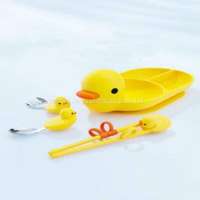 Silica gel plate baby plus CD duck baby children fall proof auxiliary food divided grid suction cup bowl independent eating