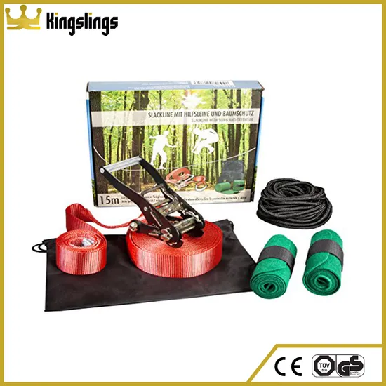 1) 50MM ratchet buckle more than 3T breaking load for walking line - (necessary) 2) 50MM width high bouncy performance (high elongation rate) walking tape - (necessary) 3) Tree cover- (necessary) 4) Ratchet cover - (Not necessary) 5) 25MM ratchet more than 1T for help line - (Not necessary) 6) 25MM high tenacity help line - (Not necessary) 7) Drawstring type carry bag - (not necessary) 8) Packing bag / box - (not necessary)