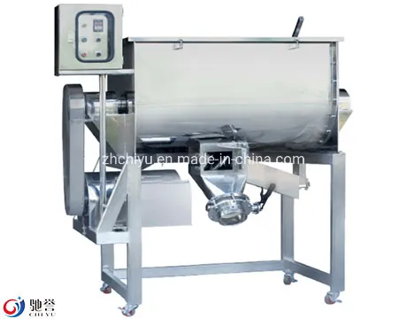 In the U shape container, there are positive and negative ribbons. Special proportion of the two ribbons can be rectified with the kind of material, quantity and the proportion of body. The ribbon blender has good effect on mixing viscosity or cohesion powder.
