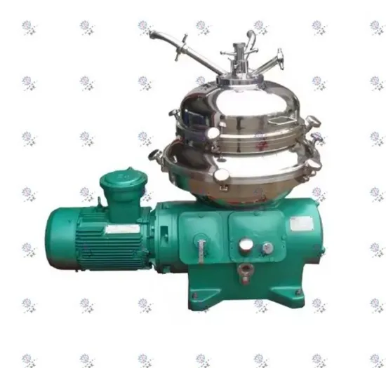 The material to be clarified enters the bowl through a feed pipe. In the distribution cabinet of the disc separator, the material is smoothly accelerated until it is synchronized with the speed of the rotary bowl. The disc stack in the rotating cylinder divides the material into many thin layers, forming a large area of clarification area. The high-speed centrifugal force makes the solid slag separated from the liquid in the disc stack deposit into the solid slag collection cavity at the edge of the bowl. The self-discharging 2 phase disc separator can be adjusted according to the material.