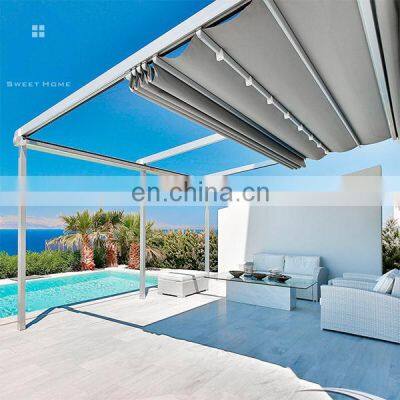Product NameModern design bioclimatic motorized aluminium louvered pergolaControl wayMotorized with remote controlFunctionWaterproof ,sunshade,windproof ,snowproof, house space extendingApplicationVilla,balcony ,garden ,backyard ,roof ,restaurant,decking ,swimming pool and so onWind Resistant180-220 KM/HSnow Loading60-100cmSizePopular standard size:3x3x2.5、4x3x2.5、5x3x2.5、6x3x2.5 or can be customizedOther related materialsSide screen/curtains, side shutter ,LED lights,heater ,fans,glass doors,outdoor furnitureInstallationWe will provide very detailed drawing and video for the installationOthers1.MOQ:1 set, we welcome small order 2.Production: we are factory , we can provide 10-15days fast production time 3.Warrenty:10 years4.Color:White, Grey, Black, or customized colors availableFAQQ1. Is this pvc folding pergola easy to install?A: We have the assembly manual instruction specifically made according to your project site. It's a DIY product designed to be easily assembled and we can provide installation video.Q2. How long is your products' warranty?A: All our products have 10 years warranty.Q3:How to guarantee the quality of the products?A:We have our own QC team to control the products quality for all our clients'orders before loading.Q4. How can i get a price of needed pvc folding pergola?A: Please give the exactly size and quantity of your required pvc folding pergola. We can give you a detail quotation and free design solution based on your requirements.Q5.I am a small wholesaler, do you accept small order?A: It's no problem is you are a small wholesaler, we would like to grow up with you together and our MOQ is 1 set.Q6. Is my first time to export from China, what if i have no experience?A: Don t worry, we have very professional sale will guide for and we can provide one stop solution including deliver the door to your home address with customs.Q7. What kind of payment terms would you accept?A: We usually accept T/T, L/C, Western Union, etc. If you prefer other payments terms, please feel free to discuss with us.Q8. What if i meet the problem after installing and using this pvc folding pergola?A: As our principle is our business had been built on hoes & backed by customer service.we are verified supplier in Alibaba. com and our can provide 10 years warranty, so if you meet any problem for using this pvc folding pergola,welcome to contact.