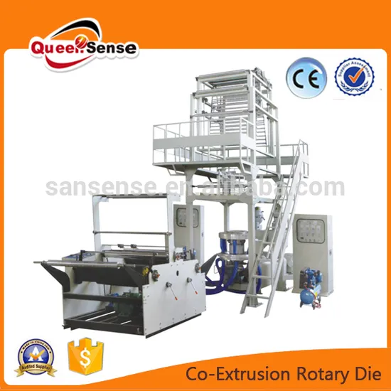Double screw ABA die head film blowing machine : the machine with two screw ,but can make three layer films. A(PE)+B( Filling material)+A(PE), it save much cost of the film.