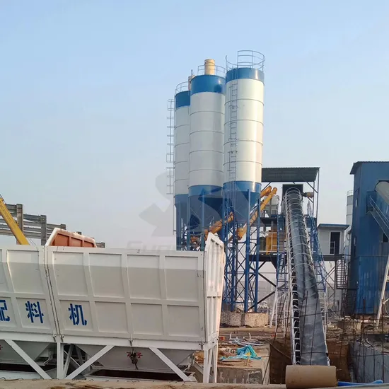 productivity 60m3/h, stationary concrete batching plant is applied to roads, airports,ports project and concrete production.