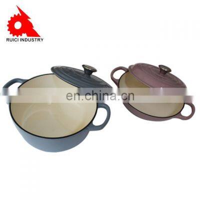 Product DescriptionFashion appearanceContracted anacreontic lines, cast iron and enamel simple sense of the collision. Western style emotional appeal spurts out, muchstove is general, can do cate in the home.SpecificationitemvalueTypeSoup & Stock PotsApplicable StoveGeneral Use for Gas and Induction CookerCommercial BuyerCaterers & Canteens, Restaurants, Fast Food and Takeaway Food Services, Food & Beverage Stores, Specialty Stores, Food & Beverage Manufacture, TV Shopping, Department Stores, Super Markets, Hotels, Convenience Stores, Cafes and Coffee Shops, Discount Stores, E-commerce Stores, Gifts Stores, Souvenir StoresSeasonEverydayRoom Space SelectionSupportDesktop, Kitchen, Dining Room, Indoor and Outdoor, Living Room, OutdoorOccasion SelectionSupportBack to School, Giveaways, Business Gifts, Camping, Travel, Retirement, Party, Graduation, Presents, WeddingHoliday SelectionSupportValentine's Day, Mother's Day, New Baby, Father's Day, Eid holidays, Chinese New Year, Oktoberfest, Christmas, New Year's, Easter Day, Thanksgiving, HalloweenMaterialMetalCast IronFeatureSustainable, StockedPlace of OriginChinaLiaoningBrand NameOEMModel NumberOEMLidCast Iron LidUsageHome KitchenHandleTwo HandlesColorCustomizedSizeCustomizedLogoCustomizedCoatingEnamelCapacity4.2LShapeCircleAdvantageEco-Friendly.Safety.durable.ColorfulPacking & Deliveryexport standard or according to customer's requirmentCompany ProfileDalian Ruici Industry Co., Ltd. is a leading manufacturer and exporter of high profile casting, machining, molds and assembly products, etc. Featuring optimum combination of price and performance, our products are widely used on valves, water pumps, speed reducers, ejectors and automobiles, etc. With over two decades of perseverance and dedication in production and total quality management, we have established a long-term loyal customer base in North America, Europe, East Asia, and Mid East.Our core competitiveness edge lies in total customer solutions. By integrating manufacturing with foreign trade sectors, we can provide total customer solutions by guaranteeing the delivery of right products to the right place at the right time, which is supported by our abundant experiences, powerful production capability, consistent quality, diversified product portfolios and the control of the industry trend as well as our mature before and after sales services. We'd like to share our ideas with you and welcome your comments and questions.FAQ1. who are we?We are based in Liaoning, China, start from 2005,sell to Western Europe(60.00%),North America(20.00%),Southeast Asia(10.00%),Oceania(10.00%). There are total about 51-100 people in our office.2. how can we guarantee quality?Always a pre-production sample before mass production;Always final Inspection before shipment;3.what can you buy from us?Castings,Forgings,Stampings,Valve Parts,CNC Machining4. why should you buy from us not from other suppliers?Over 20 years export experience on casting and machining business, advanced production(CNC and machining center) and inspection equipments (CMM), fully quality control system(ISO 9001:2008), perfect after-sales service. Main market Germany, Japan, USA.....5. what services can we provide?Accepted Delivery Terms: FOB,CFR,CIF,DDP,DDUï¼›Accepted Payment Currency:USD,EUR,JPY,CNY;Accepted Payment Type: T/T,L/C,Western Union;Language Spoken:English,Chinese,Japanese