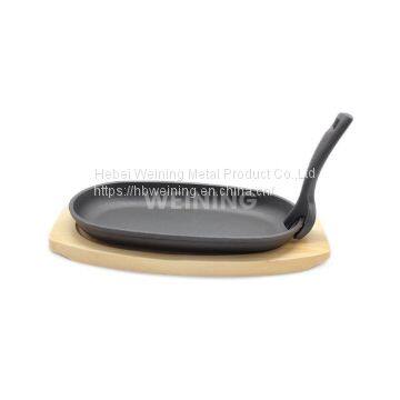 Oval Shape Cast Iron Steak Plate Sizzle Griddle with Wooden Base Steak
