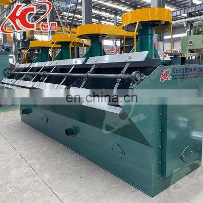 Product DescriptionFactory Price Customized Xjk and Sf Series High Recovery Silver Copper Ore Mineral Gold Sand Separator Froth Flotation MachineFlotation machine is also called flotation cell, which is the mineral separation equipment based on different physical and chemical properties of mineral particles, difference floating or chemical reaction to separate materials. The flotation machine has air suction, pulp suction and flotation functions, which can form self flotation circuit without any auxiliary equipment. It is horizontally configured, which is easy for process changes. The pulp has reasonable cycle, which can minimize the sand sediments.Product ApplicationMetal ore such as gold, silver, copper, Lead (Pb), Zinc (Zn), Tin, Nickel (Ni) and so on, non-metal mineral, raw body and materials of chemical industry..The flotation machine is mainly used for sorting non-ferrous metals such as copper, zinc, lead nickel and gold, and can also be used for rough selection and selection of ferrous and non-metal. The motor is driven by the motors V-belt drive to rotate the impeller, which generates centrifugal force to form a negative pressure On the one hand, it absorbs sufficient air to mix with the slurry. On the one hand, it mixes the slurry with the drug, and refines the foam to make the mineral bond foam Mineralized foam is formed on the slurry surface. Adjust the height of the shutter and control the liquid level so that the useful foam is scraped off by the scraper.Working PrincipleWhen the flotation machine works, the motor drives the impeller to revolve, so the centrifugal effect and negative pressure are produced. On one hand, ample air is absorbed and mixed with mineral slurry, on the other hand, the mixed mineral slurry is mingledwith additive, meanwhile, the foams are thinning, the mineral is bounded with foams, and floats up to the surface of mineral slurry and the mineralized foam is formed. The liquid surface can be adjusted with the height of adjustment flashboard, so that the useful foams are scraped with squeegee.ModelSF0.37SF0.7SF1.2SF2.8SF4Volume (m³)0.370.71.22.84Impeller diameter(mm)300350450550650Capacity (m³/min)0.2-0.40.3-0.90.6-1.21.5-3.50.5-4Impeller Speed(r/min)352400312268238Impeller motorModelY90L-4Y100L2-4Y132M2-6Y160L-6Y180L-6Power (Kw)1.535.51115Scraper motorModelY90S-4Y90L-4Power (Kw)1.11.51.Simple structure, strong agitation ability, and low energy consumption.2.The impeller is equipped with holey cylinder air alloter.3.The air scattering is uniform and the mixing effect of air and slurry is good.4.U-shaped tank, little sedimentation of sand.5.Solid particles can be fully suspended, high flotation index.6.Long service life of vulnerable parts.6 Types of Gold Ore:Gold exists in quartzite. Usually, quartz appears as small stones in large cracks in riverbeds or mountain slopes and has crystals in different colors such as white, yellow, pink, purple, gray, or black. The most common types of quartz with gold ore are rose quartz gold ore and rainbow gold ore. A high gold-quartz ore contains 25% gold by mass, and it occurs in areas where the bedrock is fractured by tectonic and volcanic activity.According to different physical and chemical properties of different types of gold ores, flotation separation utilizes various reagents to make the gold attached to the bubbles then scraping these gold particles from blades to get the concentrateAPPLICATION SCOPE:It is mainly used for the treatment of alluvial gold, as well as in combination with other types of mineral processing techniques.In addition to deal with gold processing, it can also be used for processing tungsten ore, tin ore, manganese ore, titanium ore,tantalum niobium ore, barite, Iron pyrite, antimony, chrome ore, etc.Customer Visits & Exhibition SouvenirsCompany ProfileHengchang headquarters is located in the industrial park in Gongyi City. It covers a total area of 150,000 square meters,including 100,000 square meters of standarized workshop. There are more than 200 sets of various large and medium-sized metal processing lathe, riveting machine, welding equipment and assembly equipment. We have more than 300 workers, including more than 20 middle and senior technicians. Hengchang is mainly focus on 4 series products: stone crusher machines, sand making equipment,powder grinding mills, mineral processing equipment and their spare parts. Every year, Hengchang can turn out 1,000 sets of crushers and10,000 tons of crusher parts.Our ServiceBefore-sale services:We guide customers to choose the best and applicable device; provide the advanced, energy-saving and practical technological processes, as well as we are responsible for the planning and design of the site.Sale services: Products must be inspected strictly before being sold; customers are invited to simulate and test machine on-the-spot and raise objections; in accordance with the agreements stipulated in the contract, we will arrange delivery.After-sale services: Our Company will send professional engineers to guide device installation, debug and train operators until customers are fully . Moreover, we will design and produce machines according to the special requirements of customers. Solemn Promise: The quality guarantee period of machines is one year except the wearing partsTips:The prices in the web only to be reference,according to raw material's price fluctuations; Specific price is subject to the negotiation.Packing &DeliveryPackaging Details:Normally the machines are taken apart before delivery and are packed by suitable packing ways, the packing ways are as below: Nude packing. Bundle packing. Grass rope packing. Water proof packing. Wooden pallets packing. Wooden box or carton box packing.Delivery Time:We will customize according to the actual needs of customers. Senior designers start to design the plan. After receiving the deposit, we will complete the delivery within 15 to 25working days.FAQQ:Why we believe in Gongyi Hengchang company? A: