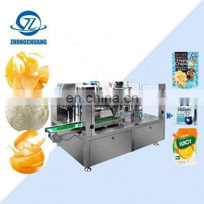 Product ParamentersItem NO.ZC-R200/250DimensionsL2460mm×W1830mm×H1460mmPacking Speed16-60 Bags/min (depending on products character and filling volume)Packing Bag SizeL: 100-350mmW : 60-200mm/80-250mmWeight1800KGAir Compressed air consemed≤0.6m³ / minAccuracy±1g (≤100g) / ± 1%( >100g) according to materialApplicationSuitable for liquid or semifluid products packing, such as beverages, juice, ketchup, bechamel etc.Working Procedure1.Bag feeding2.Coding3.Opening4.Filling A5.Filling B6.Heat sealing A7.Heat sealing B8.Forming and outputDescription1.According to customer demand for customized, to recommend the appropriate products to customers.2.Storage racks devices which can Satisfy the products short stop ,which can keep the production line work continuously.3.Good service,If you have any questions, you can communicate by telephone video.Recommend ProductsProducts DescriptionCompany ProfileFAQTrade patterns 1. Lead time: 15-20 working days after receive deposit2. MOQ: 1 set.3.30% deposit+ balance payment before delivery by T/T, western union, cash.4. Loading Port: Shantou or Shenzhen Port Export Process 1. We will prepare goods after receive deposit 2. We will send goods to your warehouse or shipping company in China.3. We will give you tracking number or Bill of loading when your goods is on the way 4. Finally your goods will arrive your address or shipping port Frequently Asked Questions Q: First time import, how can I believe that you would send products? A: We are verified company by Alibaba to make transaction success, we support and recommend you to pay money to us by Alibaba Trade Assurance.Q: How about the quality of your product?A: Our products manufactured strictly according to national and international standard-- We have ISO certification-- We take a test on every product before delivery.Q: How to choose the machine type for our bags? A: Pls support us the following information about the bag and the food. 1) Bag pattern (Bag samples or pictures would be appreciated.)2) Bag size 3) The filling weight or volume 4) Material of food: powder/liquid/paste/granular/massiveness Q: What aftersales service or any question about products?A: This machine enjoys 1 year warranty