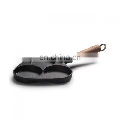 Product DescriptionCast iron skillet divided egg 3 hole tilting wooden handle frying panMaterialCast ironSize38*20*2.5cmWeight 1.3kgFinished Vegetation OilColorBlack or custom colorLogoAvailablePackageColor box can be customized-Heat uniform,Good Heat Retention-Made of high quality cast iron is strong and durable-Perfect on most of the heat sources e.g. gas, induction or oven (except Microwave)Details ImagesComfortable HandleThe anti-heat wooden handle of the pot feels comfortable.Wooden handle is scald proof,very safe,and the hole is easy to hang.non-stick pan Heat uniform With the nonstick performance, the pot is healthy an not easy to burn when cooking.Thickening of panThicken the pot wall for evenly heat storage.Holes are deepened to prevent egg spillageImportant Explanation1) Use this cookware don't cook acid food within one month ( pickled Chinese cabbage, tomato)2) When use cookware pay attention color and luster change3) Previous inappropriate stew4) If happen rust, can use brush With some vinegar to cleanPacking & DeliverlyRelated ProductsCertificationsFactory IntroductionShowroomStorage CapacityManufacturing Technique