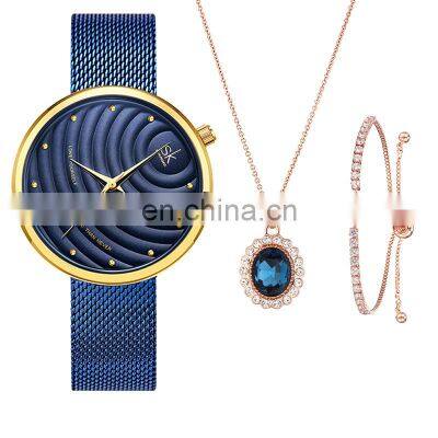 Shengke 2021 New Fashion Ladies Watches Set Alloy Case Steel Mesh Band Blue Wristwatch Gift Set Earing Necklace Accessories Buyer Feedback FAQ 1.What is your MOQ (MOQ=Minimum Order Quantity)?If you order our brands (SINOBI / SK) watches which we have in stock, no MOQ limited, you can buy how many you want, and can mix with different models and different colors. 2.Can you provide sample first before I place mass production order?Yes, we can provide samples for your reference, and the sample fee will be returned to you when you order mess bulk products which reaches minimum order quantity 300~500 pieces3.How about your products quality?Our quality had praised so many clients , quality advantage as below :1)All our SINOBI and Shengke (SK) watches are at least 3ATM water resistant, 100% tested by Waterproof Testing Machine.2)All our brands’ watches are vacuum plated,color would last at least 1~2 years.3)For OEM or ODM watches, we will produce the watches as your requirements. It can comply with CE&RoHS, etc. You can arrange your QC team or hire the third party to test the watches before delivery.4.How long is your warranty time?All our Sinobi and Shengke (SK ) brands watches’ is 12 months warranty. 5.What's the delivery time?If take our brand logo watches, the delivery 3~7 days after paymentFor OEM orders, the delivery time is : alloy case watches 20~25 days , stainless steel case watches 45~50 days .6.How about shipping methods?If you have a courier in China, goods can be sent to your courier after payment.If you have no cooperated courier, we will check the shipping details and cost for you after your final order is confirmed.7.What's your payment terms?1)For our stock Sinobi and SK brand watches , payment should be arranged 2~3 days before shipping .2)For OEM or ODM order with brand your own logo, 50% deposit before production, 50% balance before shipping .8.Are you factory or trade company?We are factory (in Guangzhou ,China),welcome to visit our factory, if you are interested in our factory ,please contact us for more details.9.How to place an order?Click below picture to contact with us for more information