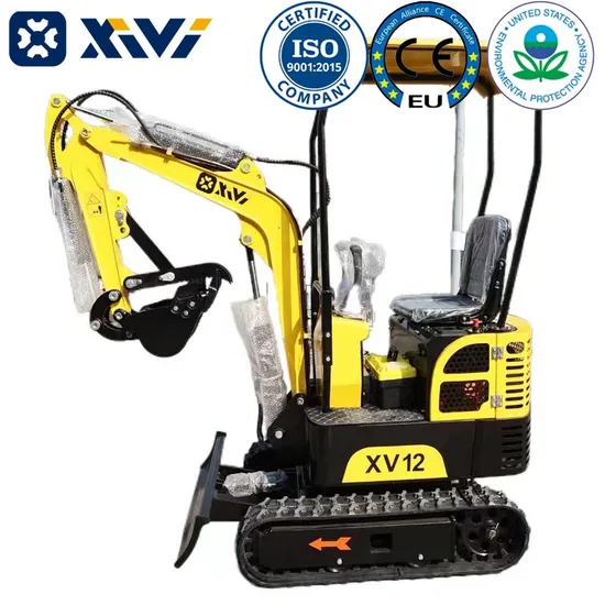 The XV12 Mini Excavator, a compact powerhouse with advanced hydraulic pilot controls and a comfortable operator's seat.