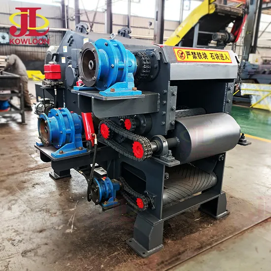 1.Compact structure, simple operation, the drum wood chipper has a wide application for wood materials chipping and biomass materials processing. 2. Adopting the double roller feeding system, the drum wood chipper has a higher efficiency than the common one. 3. The chipper body is made of high strength steel, firm, shock-resistant, with less noise. 4. A series of screen for choice, the drum wood chipper can process wood chips with a variety of size and thickness for different requirements. 5. Special design and reliable blades layout, the drum wood chipper works more efficiently. The wood chips is of even length and uniform thickness. 6. With the hydraulic buffer system, the maintenance of the chipping machine is simple.                                                                                                                                                      Raw Materials                                                                                                                        Kowloon Machinery JLBX drum wood chipper raw materials: logs, branches, veneers, waste veneers, bamboo, cotton stem and other non wood fiber stems. These raw materials can be cut into wood chips of different specifications at one time, these chips can be used as the basic raw material for making particleboard, fiberboard, non wood-based board and pulping and papermaking.