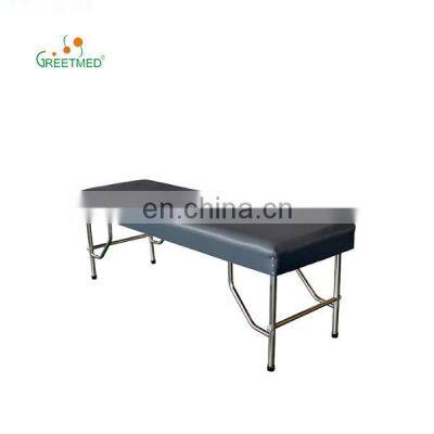 High quality medical clinic patient hospital examination bedProduct Descriptionexamination bed specification:ItemGT506-001 GT506-002 GT506-003Specification1900x600x620mm 1900x600x620mm 1900x600x620mmexamination bed picture:  Company Information Certifications Trade Shows FAQ1.Can I get some samples?We are honored to send you our samples,but the express fee need to paid by your esteemed company2.How about the delivery time?1).For Samply order will be prepared within 5 days.2).For bulk order.normally,it needs 20-30 days,it's based on you QTY.3.Can you do custom-made?OEM,ODM welcomed.1).Silk print your logo on the product.2).Customized colorbox.3).Design and produce based on your idea and draft.4.How about the payment?1).Amount less than $1000.You can pay for the order by Paypal,western Union.2).Amount more than $1000.You can pay for the order by T/T,LC.We support Trade Assurance - A free service that protects your orders from payment to delivery,it can make your funds safer.5.How about the shipping?1).For sample order,it can sent by express company like UPS,Fedex,TNT ect.We have strong cooperation with them and if you have express collected account,you will no need to pay us.2).For bulk order,it would sent by sea.We have our cooperation forwarder and you also can use your OWN forwarder.
