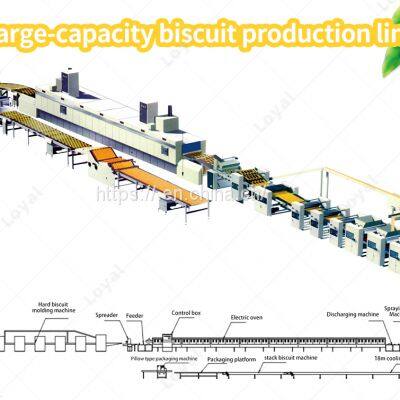 Biscuit Forming Machine-Tunnel Hot Air Circulation Electric Oven-Oil Spraying Machine-Turning Machine-Cooling Line-Biscuit Finishing Machine-Biscuit Sandwiching Machine-Packaging Machine