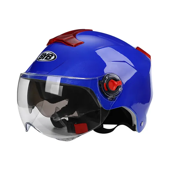 BYB/RNG Blue BY-335 Double Lens Open Face Motorcycle Helmet Fashion Bicycle Electric Vehicle Helmet