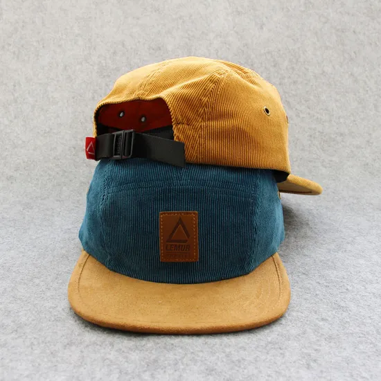 Wholesale Blank Corduroy 5 Panel Caps Custom streak Snapback cap Leather label customization