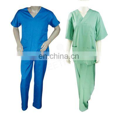 Products DescriptionHot sale v neck design men women hospital uniform medical disposable scrub suit for doctors and nursesV-neck pull over scrub topshort sleeves1 left breast pocket and 2 patch pockets and side slitsUnisex pantelastic waist bandslash pocketsfront fly, zipper closure65/35 T/C twill or 100% cotton fabricsizeXS, S, M, L,XL, 2XLcolorwhite, teal, navy, royal blue, khaki, hunter green, purple solidRelated ProductsCompany InformationCertificationsExhibitionFAQ1.Can I get some samples?Yes2.How about the delivery time?1).For Samply order will be prepared within 5 days.2).For bulk order.normally,it needs 20-40 days,it's based on you QTY.3.Can you do custom-made?OEM,ODM welcomed.1).Silk print your logo on the product.2).Customized colorbox.3).Design and produce based on your idea and draft.4.How about the payment?1).Amount less than $1000.You can pay for the order by Paypal,western Union.2).Amount more than $1000.You can pay for the order by T/T,LC.We support Trade Assurance - A free service that protects your orders from payment to delivery,it can make your funds safer.5.How about the shipping?1).For sample order,it can sent by express company like UPS,Fedex,TNT ect.We have strong cooperation with them and if you have express collected account,you will no need to pay us.2).For bulk order,it would sent by sea.We have our cooperation forwarder and you also can use your OWN forwarder.