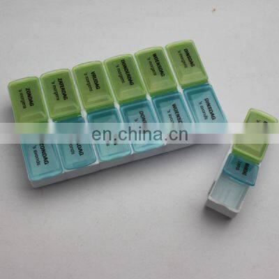 Cute Decorative Pill Boxes Custom Design Logo Color 7 days Medication Plastic Pill Boxes BulkProduct Descriptionpill boxes bulk picture Details description of pill boxes bulk : 1) Plastic PP material2) With 14 compartments3) The colour and printing can be as per custom's designers Specification of pill boxes bulk :Model no.PT6061Size18.3*9.3*3.3cmMaterialplastic PPUnit weight106gColorAs per PantoneCompartments14Certificationfood gradeWay of logo printingSilk sn, stamp printing or heat transfer printing Details pictures of pill boxes bulk : Packaging & Shippingpill boxes bulk packing details:1pc/polybag, 100pcs/ctnCtn size: 49x40X35cmG.W./N.W.:12/11kgs Our Services1) Your inquiry will be replied within 12 hours.2) Well-trained & experienced sales can reply your inquiries in English.3) Working time: 8:30 am ~6:00 pm, Monday to Friday (UTC+8).During working time, E-mail will be replied to you within 2 hours4) OEM & ODM projects are highly welcomed. We have strong R&D team.5) The order will be produced exactly according to order details and proofed samples. Our QC will submit inspection report before shipment.6) Your business relationship with us will be confidential to any third party.7) Good after-sale service. Company Information Ningbo Pinbo Plastic Manufacturer is one of most competitive supplier specializes in promotional gift items, was established in 2006. With more than 160 persons and many modern facilities, currently, we have already exported to America, Europe, Japan, Mexico and 20 other countries and regions. Your OEM and ODM product are welcome, our 6 experienced engineers and designers can work on your ideas. We regards “high quality, competitive price, on-time delivery, and fast and effective communications” as our tenet, hope to cooperate with more customers for mutual development and benefits. FAQ Our partners:
