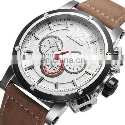 Title Create Your Own Brand Casual Big Dial Analog Relogio Watches Men [ OEM & ODM ]Product Description Case materialStainless steelCase ColourSilver or Rose gold or Gold or BlackDiameter Size48MMStrap MaterialGenuine LeatherStrap Width24-22MMClaspSteel buckleCase backStainless steel backMovementMiyota JS20 movementWater Resistant10ATMDialCustomizedBrandCustomized Your LogoSample leadtime3-5 days for stock modelsMass production time30-45 working days Company InformationHK Dualtime watch industry Co., Ltd is a watch manufacturer build up in 2009 and passes through the certification of ISO9001. The factory area is 1400 square meters, and the annual yield is 500000pcs watches. The company owns a professional research & development team. We can do 300 meter waterproof with good quality. There are more than 2000 watch styles and more than 500 watch samples available, which include lovers series, lady series, sports series, military watch series, gentleman series, electronic series and gemstone series. Most watches are exported to Europe, America, and Southeast Asia. Package & ShippingStandard Package (Free of charge)10 pcs watches inside one foam tray, then 10 trays inside one outer carton. Custom-made Package (with charge)If you have Custom-made package, we can source for you. ShippingMany friends concern about the shipping cost, normally the goods will send out through DHL, UPS, TNT, EMS, FedEx(door to door) if you do not have a domestic forwarder in China. The cost mostly depends on the final choice for the watch models, packing and shipping method, for sure we will recommending the most economic one for you.Certifications Our ServicesQuality checking standard:1. All incoming parts and assembled watched will be checked carefully during the whole process.2. All watches will be passed through the waterproof testing.3. All watches can be complied with CE/RoHS, nickel free, etc. 100% safety strap, comfortable, eco-friendly and non toxic to body.Gurantee period:Our gurantee period is one year since the delivery time of mass shipment. During this period, we will take full responsiblilty for all deffective caused by normal using. Either you can send back for repairs, or we send out new parts for your replacement. FAQQ: What is your MOQ? Can i mix colors & styles?A: No MOQ limited for stock watches. Q: Can we have our logo on the watches?A: Yes, you can. Q: Will you provide samples and how much is it?A: sample cost for stock model will be US$50/PC. If need customized logo sample, it will cost US$100/PC. Q: How long is the delivery time of samples and mass order?A: 3-5 days for stock samples without logo, 30-45 working days for mass order if we have enough stock parts. Q: About paymentA: by T.T. If sample order, full payment before shipment. If mass order, 30% deposit after order confirmation, 70% balance beofre mass shipment. For more discounted products, pls contact us as below. Thanks!